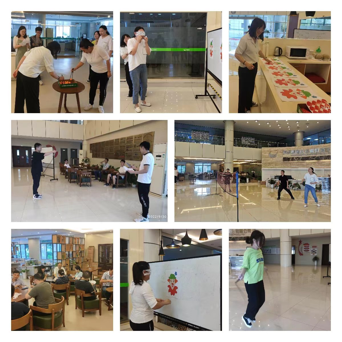 本次“迎國(guó)慶”活動(dòng)共設(shè)有“文體活動(dòng)”、“趣味游戲活動(dòng)”、“智力游戲(摜蛋)”三個(gè)大項(xiàng)目,其中“文體活動(dòng)”包含跳繩、羽毛球、夾乒乓球三個(gè)小活動(dòng),“趣味游戲活動(dòng)”包含貼鼻子游戲。
